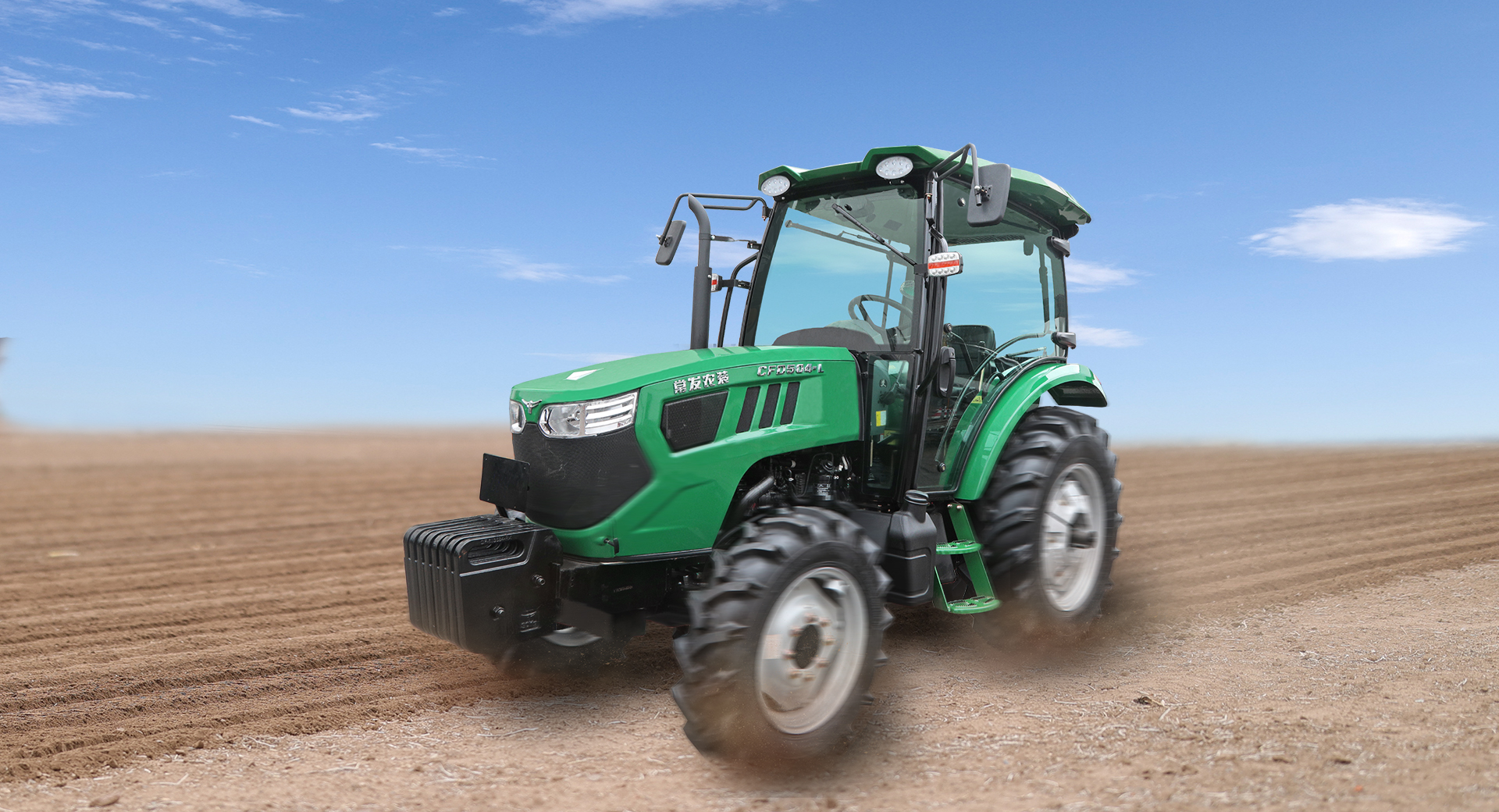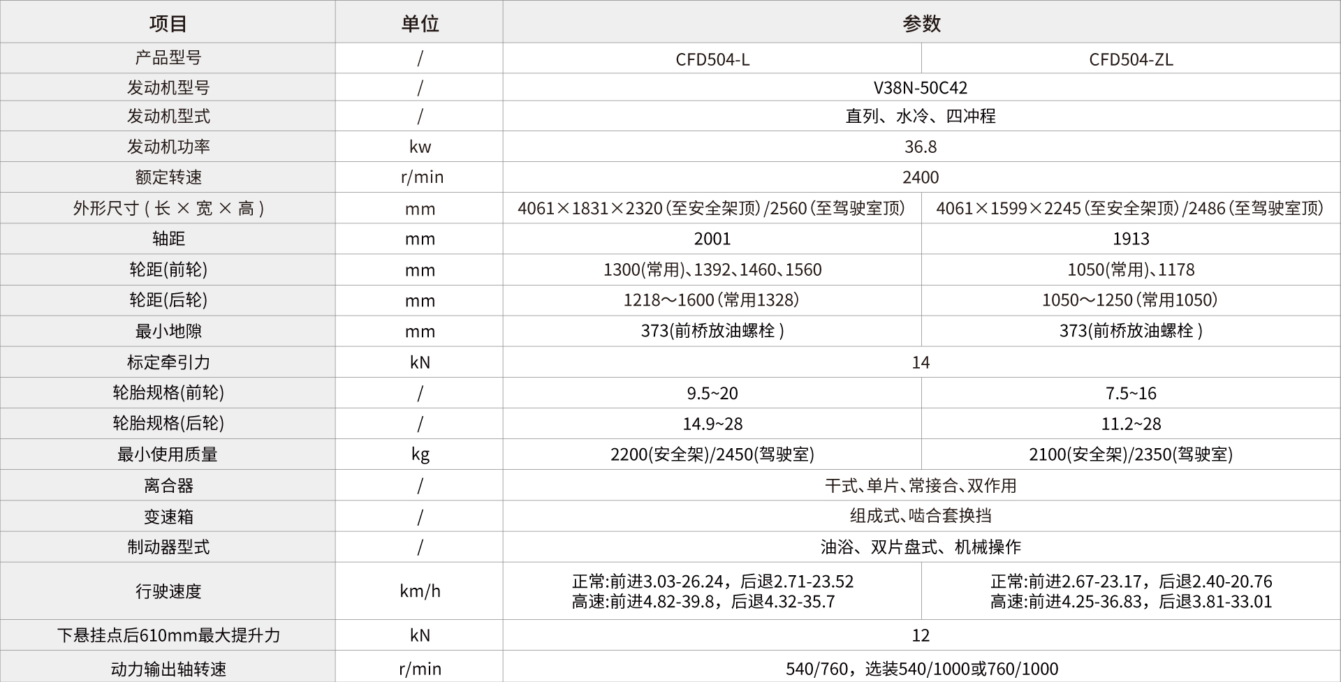 加長(zhǎng)軸距(2001mm)、加高車(chē)身、加粗半軸,整體外觀更大,牽引性能更強(qiáng),可靠性更好;最大輪胎配置大。(可選平花胎前平花9.5-20,后平花 14.9-28)