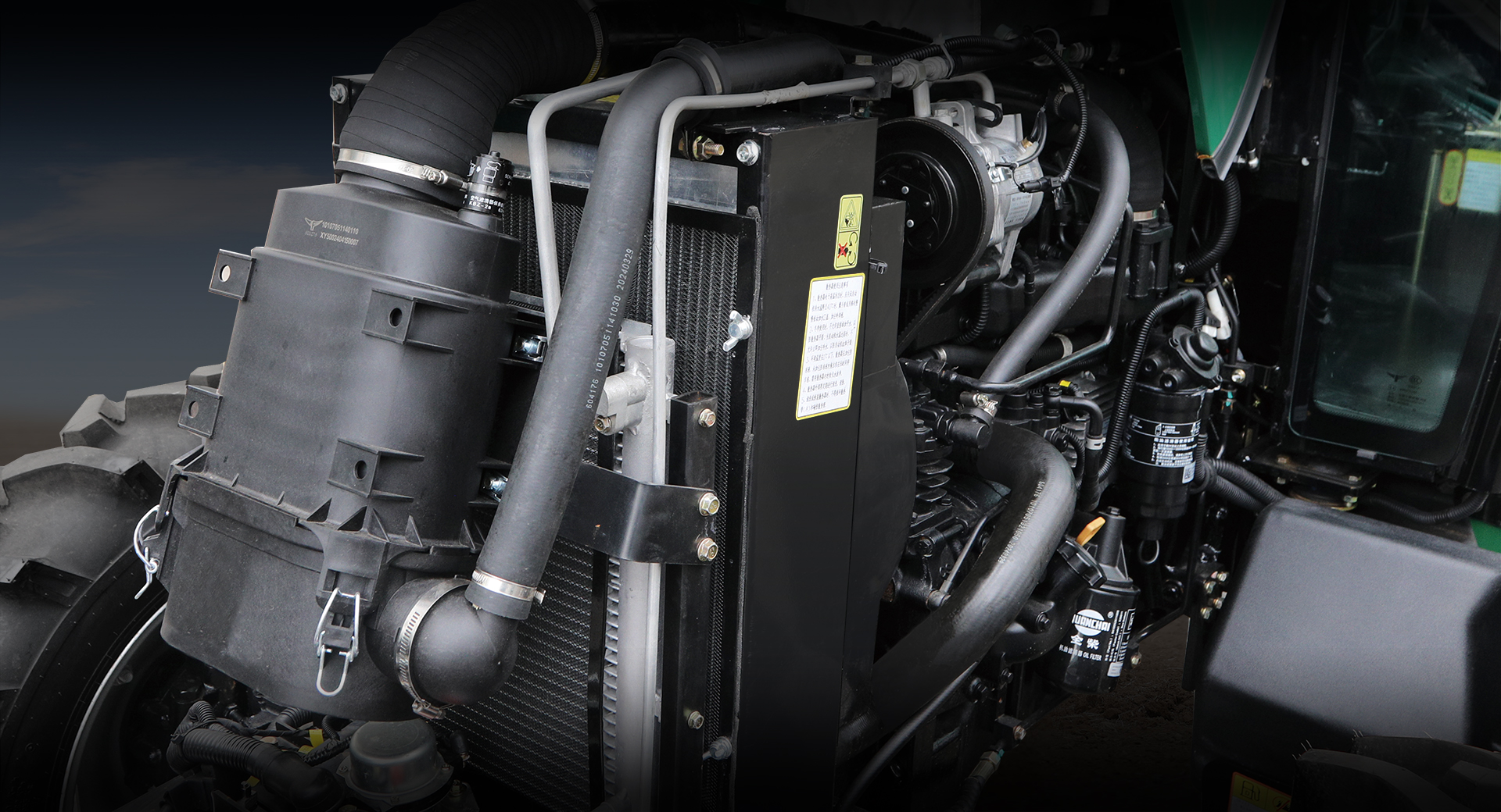 配套全柴V38N大自吸發(fā)動(dòng)機(jī)(排量3.77L),整機(jī)低速扭矩爆發(fā)力強(qiáng)。